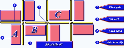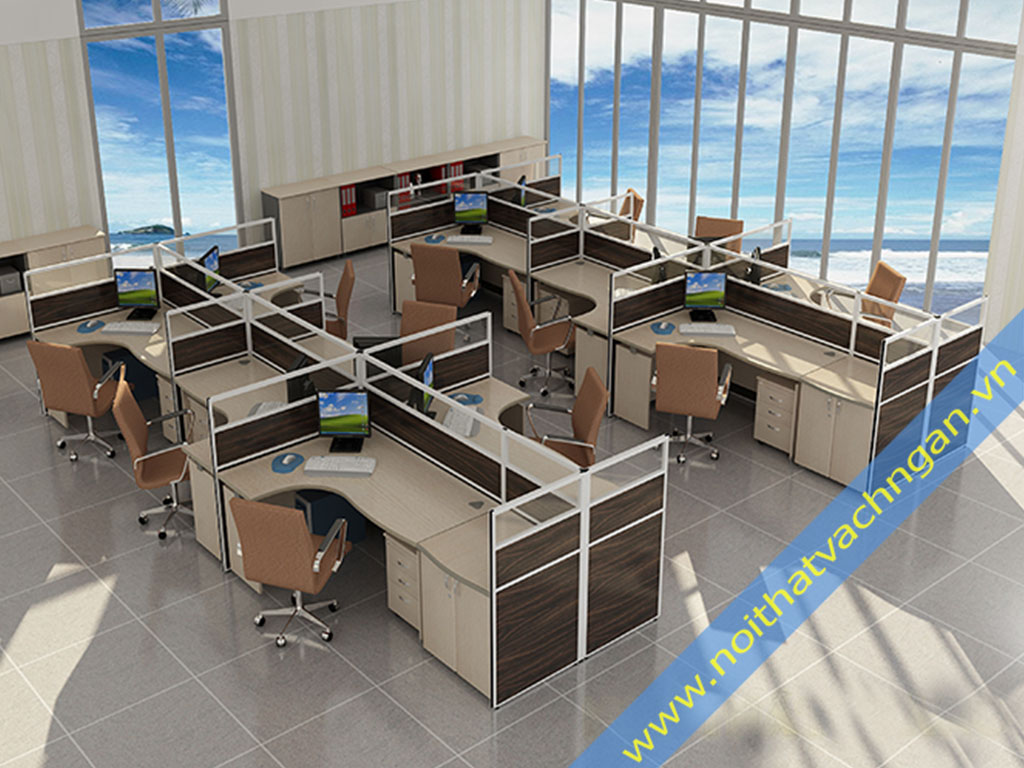 Mẫu vách ngăn bàn làm việc VNB02 là một nhóm sản phẩm vách ngăn bàn làm việc VNB. Căn cứ vào các cách bố trí bàn làm việc có vách ngăn thì vách ngăn bàn làm việc VNB02 được phân chia theo kiểu ngồi bàn lượn trái hoặc lượn phải, ngồi đối diện nhau đan xen theo hình xương cá.