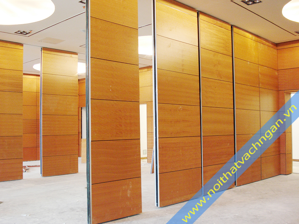 | 24 | VND100V15C4M2 | Vách ngăn di động VND100V15C4M2 mặt gỗ Veneer là một sản phẩm Vách ngăn di động do chúng tôi cung cấp. Chất liệu được làm bằng khung nhôm định hình bề mặt nhôm anode trắng mờ, khung trong bằng thép mạ kẽm. Mặt vách được làm bằng gỗ công nghiệp ván ép dầy 15mm bề mặt phủ Veneer cao cấp. Bên trong có bông thủy tinh cách âm. Vách ngăn hoạt động theo nguyên lý cố định vách bằng đẩy ép 2 trục, chuyển động ra vào bằng bi ngang 2 tầng trong ray nhôm định hình. Vách ngăn di động có 04 chỉ chia trên vách thành 5 múi có 2 mầu, không có cửa trên vách ngăn và không xen kẽ mầu giữa các tấm vách | ![]() |