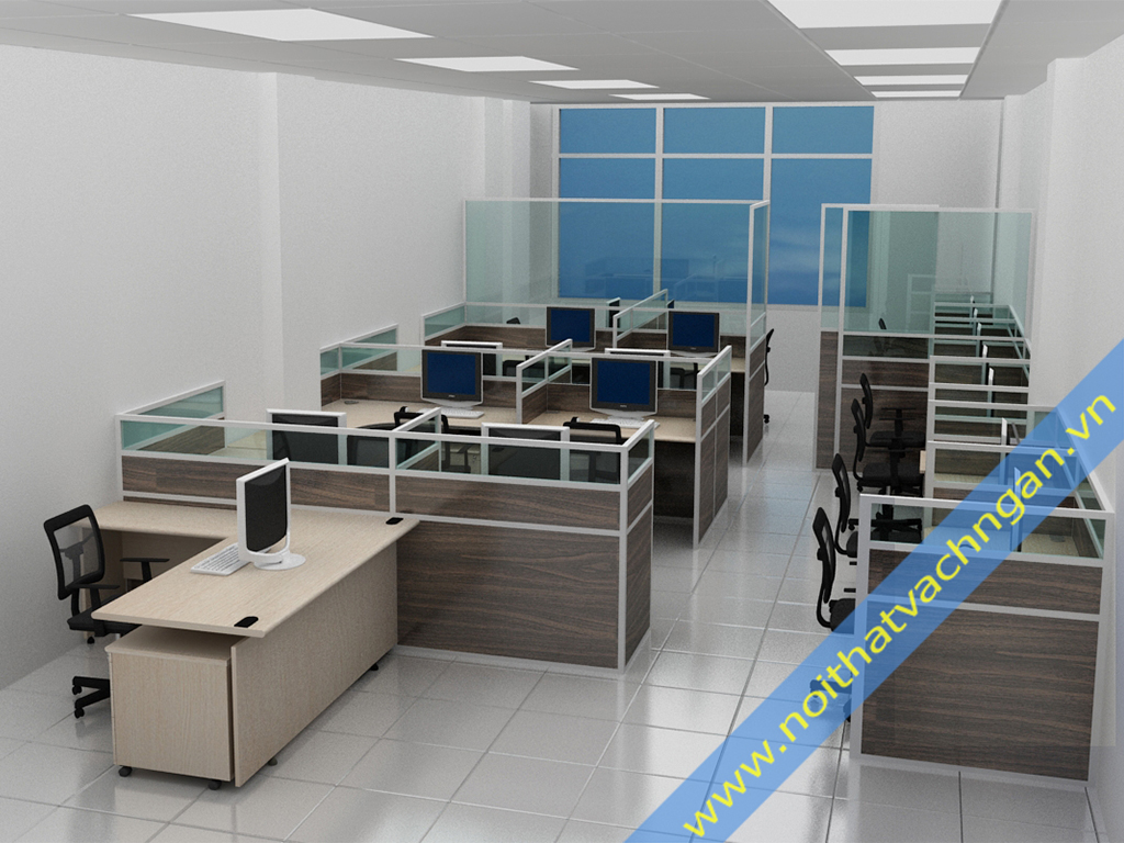 Vách ngăn bàn làm việc gỗ-gỗ-kính VNB03GGK