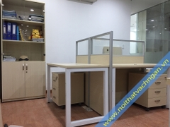 Chất liệu: Khung nhôm mạ Anode (Anodizinh); vách trên kính trắng 4mm, vách dưới Vinyl Hàn Quốc; không có hộp kỹ thuật.