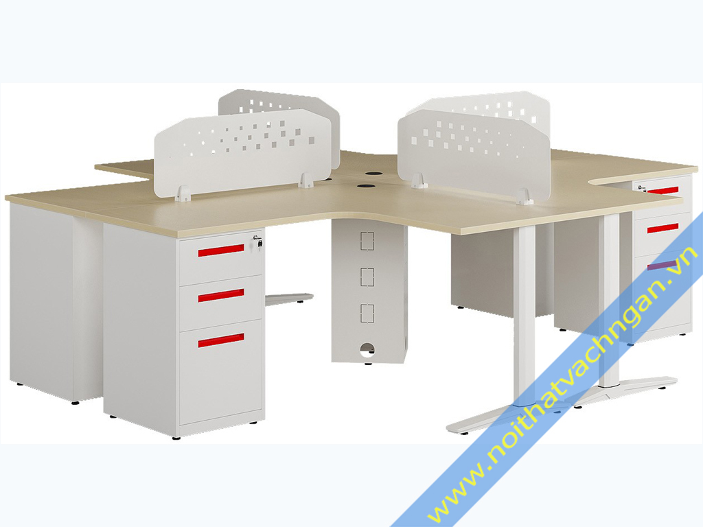 Khi mua sắm vách ngăn The One thì ngoài chi phí về vách ngăn bàn làm việc, một chi phí khác đó là bàn làm việc, hộc, tủ phụ,... để phục vụ cho nhân viên. Hiện nay, trên thị trường nội thất có rất nhiều mẫu bàn làm việc đi kèm với vách ngăn, mỗi một mẫu bàn có giá cả khác nhau phụ thuộc vào: Kiểu dáng, kích thước, chất liệu, hiện tại chúng tôi tạm thời chia ra làm các loại mẫu bàn làm việc đi kèm với vách ngăn bao gồm: Bàn làm việc có mặt bàn chữ nhật, Bàn làm việc có mặt bàn là lượn trái, lượn phải, Bàn làm việc có mặt bàn hình tam giác, chữ Z, ..., sản phẩm có thể là chân gỗ, chân sắt, không có chân (Bắn trực tiếp lên vách ngăn), bàn có thể liền hộc khoặc không liền hộc.Với những sản phẩm vách ngăn của Nội Thất The One Hòa Phát sẽ phù hợp với tất cả các loại bàn làm việc trên