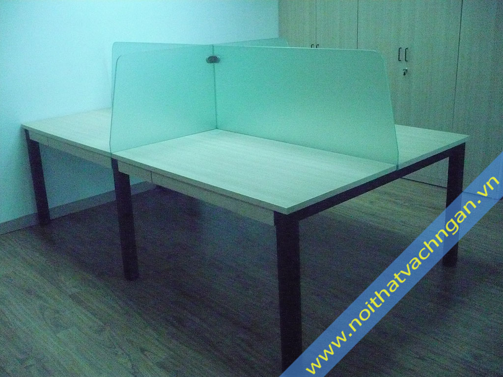 - Vách ngăn được lắp ghép bởi các bàn chữ nhật người ngồi đối diện nhau, toàn bộ vách trên mặt bàn.